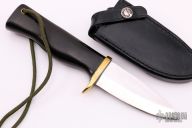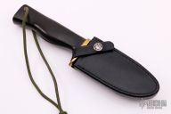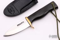 The Fireman Special is one of Randall's non-catalog knives. .225" stainless blade stock. 1.276" blade depth. Extra-heavy beveled blade. Thumb notches. Brass guard, black linen micarta handle. Full tang construction. Comes with high ride black leather sheath.  Has a few light scratches, otherwise excellent condition. Comes with a zippered case.