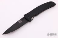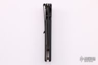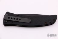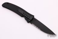 This Genesis by Edge Design Inc. features a black drop point partially serrated blade with swedge and dual thumb studs. The handle is composed of textured black zytel over single titanium liner and standoffs. Black coated stainless steel tip down clip and lanyard hole in pommel. Includes a zippered case. Excellent condition.