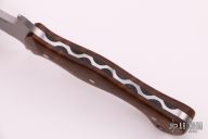 James Scroggs sold his first knife in 1985 and specializes in making straight knives that are lightweight for their size, with a preference for high-grade wood handles. He produces his own designs of hunters, hide-outs, and fighters. In 2012, 2014, and 2016 he won the Best Hunter award at the Branson Hammer-In & Knife Show. Voting member of the Knife Makers Guild.