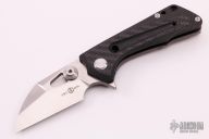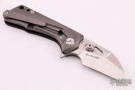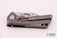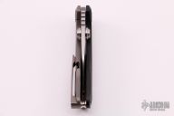 This TS138CF by Two Sun Knives features a satin finished blade with notched thumbrest and flipper. The handle has carbon fiber and tumbled titanium frame with matching backspacer and tip up clip. Nice detent, lockup and blade seating. Comes with original box. Excellent condition.