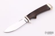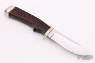 This knife by Corbin Sigman features a mirror polished blade, .190" blade stock and 1.015" blade depth, hidden tang construction. The handle has a nickel silver guard and pommel, Macassor Ebony grip with nickel silver and black spacers, has nickel silver pins accenting the grip. Comes with letters from the maker from the original purchase. This knife was made in 1985. Excellent condition.