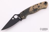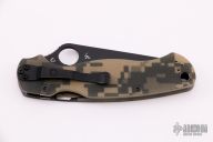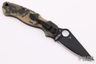 This FACTORY SECOND Paramilitary 2 Linerlock Folder has a black CPM S30V stainless steel clip point blade with thumb hole and notched thumb rest. Handle is digi camo G10 with stainless steel liners and black stainless steel 4-way reversible clip. Has a scratch on the blade finish, otherwise excellent condition.