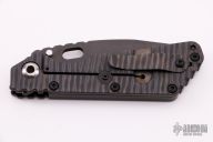 This MSC SMF framelock folder by Mick Strider features a black tanto  blade and a black MEFP aluminum and flamed titanium frame and tip up titanium clip. Includes Hinderer "Lock Bar Stabilizer" for maximum reverse lock retention. Nice detent, lockup and blade seating. New from maker.