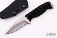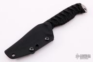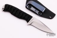 This Magni by Joe Watson features a stonewashed blade with false top edge, .161" blade stock and 1.003" blade depth, full tang construction. The handle has black cord wrap over black cord. Comes with a kydex sheath with belt clip. Excellent condition.