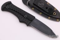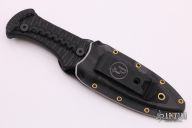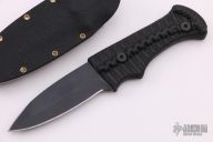 This Blood Shark by Tracker Dan features a black finished blade with a sharpened top edge, .127" blade stock and 1.031" blade depth. The handle has milled black G-10 grip. Comes with a kydex sheath and the knife will fit in either direction. New from maker at the CCKS.