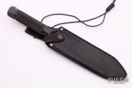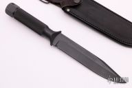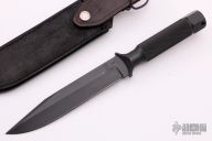 This Mk. V by Chris Reeve Knives was made around 1987 and is #294. It has a clip point blade with false top edge, .220" blade stock and 1.238" blade depth, integral construction with knurled handle and removable aluminum butt cap. Comes with a black leather sheath with belt loop. Has some wear on the finish, mostly on the butt cap, otherwise excellent condition.