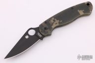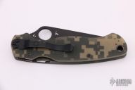 This FACTORY SECOND Paramilitary 2 Linerlock Folder has a black CPM S30V stainless steel clip point blade with thumb hole and notched thumb rest. Handle is digi camo G10 with stainless steel liners and black stainless steel 4-way reversible clip. Excellent condition.