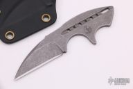 This Tree Frog from Begg Knives features a tumble finished wharncliffe blade with satin a false top edge, 1/8" blade stock and 1" blade depth, integral construction. Comes with a kydex neck sheath. Excellent condition.