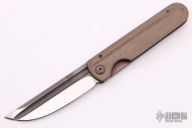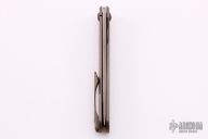 This knife by Dan Fairly features a drop point blade with satin finished grinds and  tumbled flats with a single fuller.  The handle features a textured and anodized titanium frame, backspacer and tip up pocket clip.  Includes a COA and a padded zippered case.  Excellent condition.
