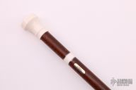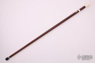 This cane by WM. C. "Bill" Johnson features snakewood shaft and carved antique ivory billiard ball grip with tiger iron inlay. Excellent condition.