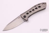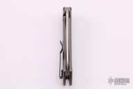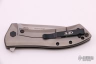 This 0801TI is a Todd Rexford design executed by Zero Tolerance. It features a tumble finished drop point blade with swedge and flipper. The handle is comprised of a titanium frame over black stand-offs. The black coated, deep carry clip can be positioned for left or right hand tip up carry. Excellent condition.