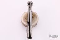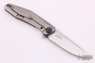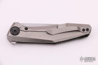 This 0470 Sinkevich designed folder from Zero Tolerance features a drop point blade with swedge. The frame is comprised of tumble finished titanium, a marbled carbon fiber inlay and anodized aluminum back spacers. Titanium pocket clip can be adjusted for left or right hand carry. Excellent condition. #1062.