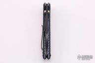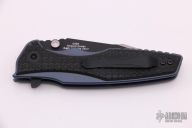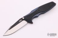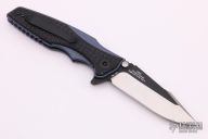 ZT's 0393 pairs an aggressive Rick Hinderer design with a solid Zero Tolerance build to create a substantial EDC folding knife. The 0393 sports a Hinderer Maximus inspired handle with a blue anodized titanium frame and custom textured, black G-10 overlays. Its Spanto style blade is made from CPM-20CV steel in a two-tone finish with satin grinds and BlackWash DLC flats. This knife is compatible with a selection of Hinderer custom hardware to make your knife stand out from the crowd. Features: KVT ball-bearing pivot for smooth and easy one-handed opening. Reversible pocket clip for secure left or right tip-up carry. 20CV Spanto blade provides excellent edge retention, superior hardness, and piercing power. Excellent condition.