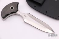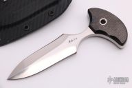 This push dagger by Mike Irie features a hand-rubbed satin finish double edge blade and carbon fiber scales. .275" blade thickness and 1.146" blade depth. Excellent grinds. Great fit in the hand. Comes with kydex sheath. Excellent condition.