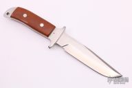 This Integral Fighter Prototype from Jim Webb features a clip point blade with false top edge, .241" blade stock and 1.341" blade depth at the ricasso, integral bolster and butt with full tang. The handle is comprised of an integral guard and butt, and natural linen micarta scales. Lanyard hole in pommel. Comes with a nylon zippered case. Excellent condition.  #0