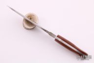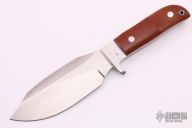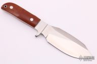 This Integral Camp Knife from Jim Webb features a clip point blade with false top edge, .234" blade stock and 2.125" blade depth at the ricasso, integral bolster with full tang. The handle is comprised of an integral guard, and natural linen micarta scales. Lanyard hole in pommel. Comes with a nylon zippered case. Excellent condition.