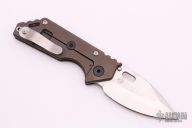 This 3/4 AR by Strider Knives features a stonewashed blade with notched thumbrest and thumbhole. The handle has a MEFP anodized titanium frame with a stonewashed titanium tip up clip. Nice detent, lockup and blade seating. New from Maker.