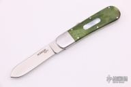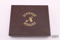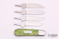 This SR01 Whittling set is a Richard Rogers design executed by Schrade Cutlery. It comes with 4 different blades that can be swapped out with the push of a button. The handle has stainless steel bolsters and tang, green bone scales with mother-of-pearl inlays. Comes with black leather case and original box and papers. #089 on bolster. Excellent condition.