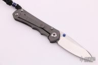 This Small Inkosi by Chris Reeve Knives features a tumble finished drop point Insingo blade with dual anodized thumb studs and notched thumb rest. The handle is comprised of a titanium frame with carbon fiber front over a single barrel spacer, bead blasted titanium clip. Has some scuffs on the frame and has been resharpened, otherwise good condition. Comes with original box and COA dated November 29, 2017.