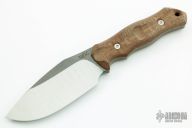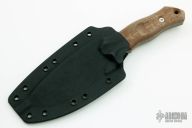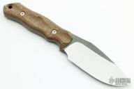 This Quarantine by Razor Edge Knives features a satin finished blade with notched thumbrest, .234" blade stock and 1.906" blade depth, full tang construction with natural canvas micarta scales. Comes with a kydex sheath. Excellent condition.