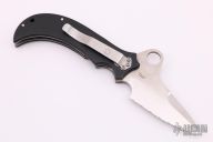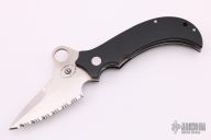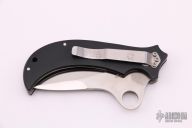 This knife by Spyderco is a Jotsingh Khalsa design, it features a satin finished blade with a thumbhole. The handle has black paper micarta scales, stainless steel liners and a stainless steel tip down clip.  Numbered 467. Nice detent and blade seating. Comes with original box. Excellent condition.