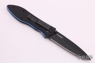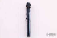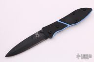 This 875BT Sentinel is an Allen Elishewitz design executed by Benchmade. It features a black coated spearpoint blade with swedge and dual thumb studs. The handle is comprised of a blue anodized titanium frame with black anodized aluminum overlays over a black polymer backspacer with recessed lanyard pin. The black coated steel pocket clip is positioned for tip down carry. Includes original box and papers. Excellent condition.