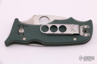 This Lil Temperance by Spyderco has a satin finished blade with thumbhole. The handle has green G-10 scales, stainless liners and tip up or down reversible clip. Excellent condition.