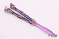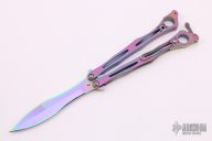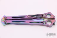 This Spyderfly from Spyderco features a rainbow finished spear point blade with a false top edge. The handles are rainbow finished stainless steel with a tip up clip (4-way reversible).  Knife is in excellent condition. Comes with a zippered case. Blade Steel: 440C