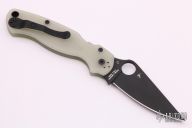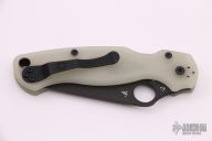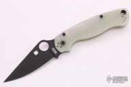 This G81GM4BKP2 Paramilitary 2 by Spyderco features a black finished clip point blade with thumb hole, notched thumb ramp and choil. The handle is comprised of textured jade G10 scales over a stainless steel subframe and lockbar. 4 way adjustable pocket clip and lanyard tube in pommel. Includes original box and paperwork. Excellent condition.