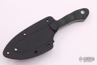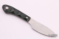 This Model 8 by James Scroggs features a high satin finished drop point blade, AEB-L stainless steel, .106" blade stock and .991" blade depth, full tang construction. The handle has green warwood scales with stainless steel pins. Comes with a kydex sheath with removable belt clip. New from maker.