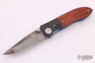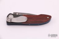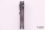 The 690 Elishewitz is a discontinued linerlock folder by Benchmade. It features a clip point black blade with carbon fiber dovetailed bolsters, rosewood scales, and anodized titanium liners, tip down stainless steel clip. Comes with original box. Excellent condition.