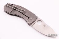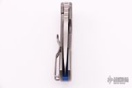 This Techno from Spyderco features a tumble finish blade with thumb hole. Tumble finish titanium frame with notched blue G-10 backspacer. Comes with original box. This model is now discontinued. Has a couple scratches and dings, otherwise good condition.