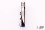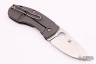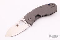 This Techno from Spyderco features a tumble finish blade with thumb hole. Tumble finish titanium frame with notched blue G-10 backspacer. This model is now discontinued. Has a couple scuffs, otherwise excellent condition.