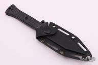 This boot knife by Zero Tolerance features a black double-edged blade with .127" blade stock and .891" blade depth, and a textured G10 handle for grip. Comes with original kydex sheath. Has a couple scuffs, otherwise excellent condition.
