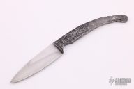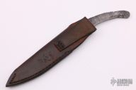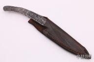 This Side Carry by Master Smith JD Smith features a cable Damascus blade and handle with nice hamon, .192" blade stock and .912" blade depth, tapered forged handle. Comes with a brown leather sheath and zippered case. Excellent condition.