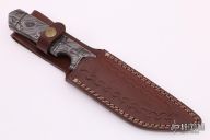 This knife by ITAC features a Damascus tanto blade with .278" blade stock and 1.281" blade depth, full integral construction. Comes with a leather sheath and zippered case. Excellent condition.