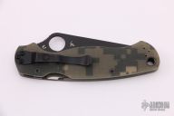This FACTORY SECOND Paramilitary 2 Linerlock Folder has a black CPM S30V stainless steel clip point blade with thumb hole and notched thumb rest. Handle is digi camo G10 with stainless steel liners and black stainless steel 4-way reversible clip. Has a scratch on the blade, otherwise excellent condition.