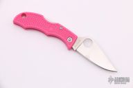 This Ladybug from Spyderco features a satin finished blade with thumbhole. The handle is pink FRN. Comes with original box and papers. Excellent condition.