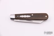 This custom slipjoint from T.A. Davison is knife number 1995 that he has made. This particular piece has a hand rubbed, CPM 154, satin finished blade with nail nick on the presentation side of the blade. The handle features stainless steel bolsters, liners, and shield as well as micarta covers. Has half stop, flush in all positions. Includes a padded zippered case. New from Maker!