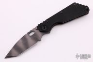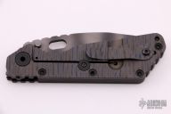 This SMF from Strider Knives features a tiger stripe tanto blade and textured black G10 and flamed titanium handle and matching tip up titanium clip. Notches on thumbrest, rear of handle, and lockup. Includes Hinderer "Lock Bar Stabilizer" for maximum reverse lock retention. New from maker.