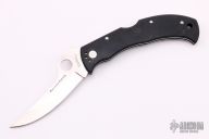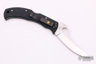 This C60P Massad Ayoob by Spyderco features a satin finished blade with thumbhole and notched thumbrest. The handle has a black aluminum frame with a black tip down reversible stainless clip. Includes the original box and papers.  Excellent Condition.