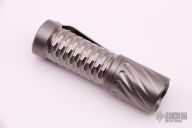 This Twist/Gunner Grip Trident by Hanko Machine Works is made from titanium, it is stonewashed, has a tip up Steel Flame titanium clip. Components: Nichia 219C High CRI (90+) 4000K. Excellent condition.
