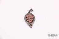This is a one-of-a-kind, hand engraved copper pendant with a skull theme.  This item features a copper sculpted main element with a "Memento Mori" decorative banner which is a Latin phrase that calls to mind our inevitable fate.  The nickel silver acanthus leaf backdrop creates a beautiful two-tone expression.  Includes a stainless chain and gift box.  New from maker.