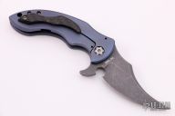 This Dybuk from Apeiron Bladeworks features an acid etched clip point blade and flipper tab.   The handle is comprised anodized titanium complemented by a carbon fiber tip up clip and backspacer. Includes a padded zippered case. Excellent Condition.