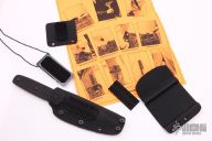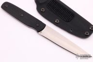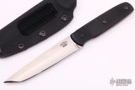 This Aikuchi by Bud Nealy features a hand rub satin finished tanto style blade with notched thumb and finger rests, .093" blade stock and 1.027" blade depth. The handle is comprised of black G-10 scales over full tang construction. Includes original paperwork and MCS Sheath system. Excellent condition.