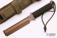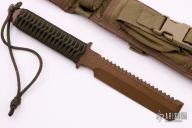 This ED CuBe EOD Knife by Strider features a copper beryllium blade with serrated spine, .281" blade stock and 1.294" blade depth, full tang construction with green paracord wrapped handle. Comes with a nylon sheath. New from Maker.