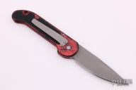 This L-UDT by Microtech is dated 2/98, it has a bead blast blade. Splash anodized aluminum handle with non-slip inserts. Side opening coil-spring automatic. Tip down carry bead blasted titanium clip. Excellent condition.