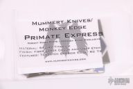 Primate Express Titanium Card Blade by Mummert Knives. Has Fiber Laser Color and Deep Etch. Tungsten carbide edge, RC 72. Comes with original packaging. New from maker.