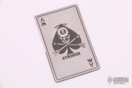 Strider Express Titanium Card Blade by Mummert Knives. Has Fiber Laser Color and Deep Etch. Tungsten carbide edge, RC 72. Comes with original packaging. New from maker.