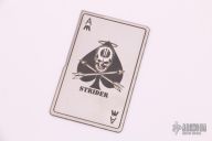 Strider Express Titanium Card Blade by Mummert Knives. Has Fiber Laser Color and Deep Etch. Tungsten carbide edge, RC 72. Comes with original packaging. New from maker.